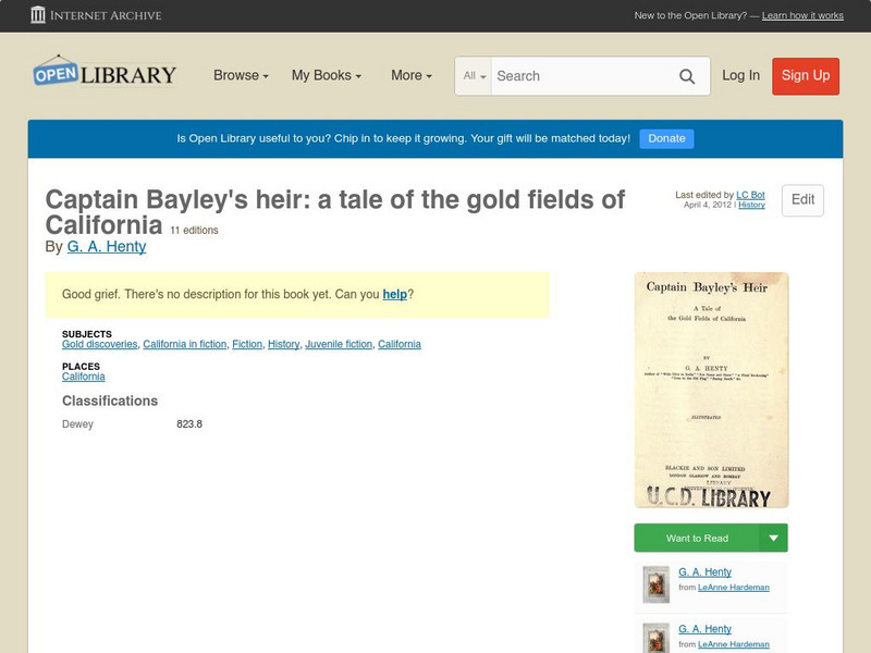 Open Library: Captain Bayley's Heir: A Tale of the Gold Fields of California