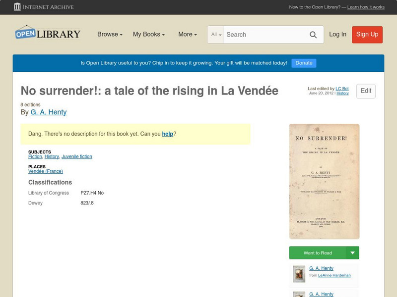 Open Library: No Surrender!: A Tale of the Rising in La Vendee