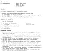 Students will see how different colors of lights mix. In this light and color activity, students watch as flashlights of different colors are shined individually, then together. Students observe that the light travels in straight lines...
