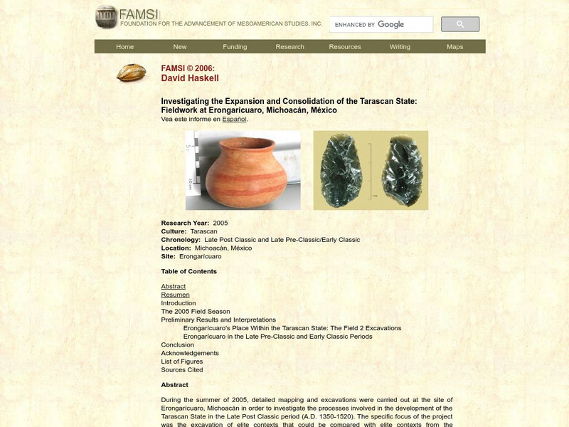 Famsi: Investigating Tarascan State at Erongaricuaro, Mexico