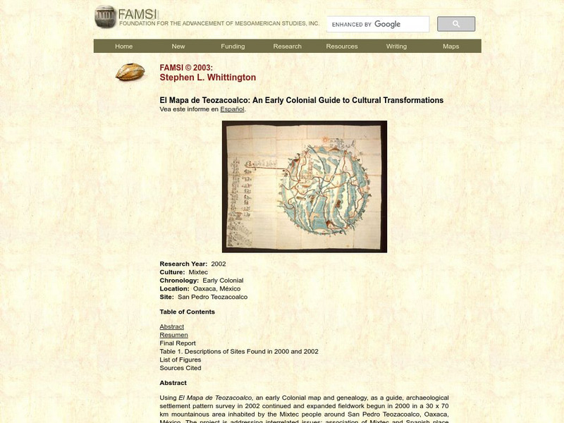 Famsi: El Mapa De Teozacoalco:guide to (Mixtec) Culture (2002)