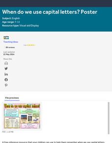 [Free Registration/Login Required] Capitalization rules are provided on this visually-appealing poster. Students will find reminders about capitalizing the pronoun I, beginnings of sentences, names, abbreviations, and abbreviations.
