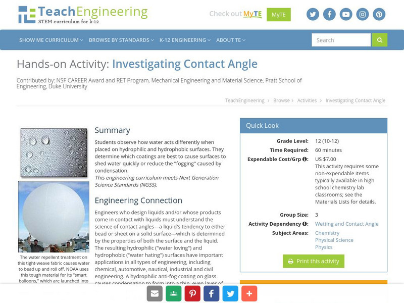 Teach Engineering: Penny Perfect Properties (Solid Liquid Interactions)