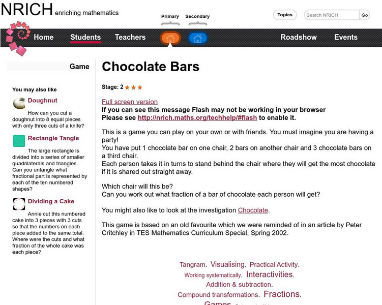 Use this game to practice finding how many of the chocolate bars (or parts) you will get when you share them with your friends at the party. If you don't figure it out correctly the computer will tell why.