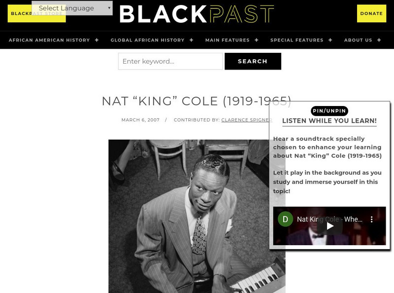 This brief encyclopedia entry gives information about Nat "King" Cole, an influential jazz pianist and vocalist.