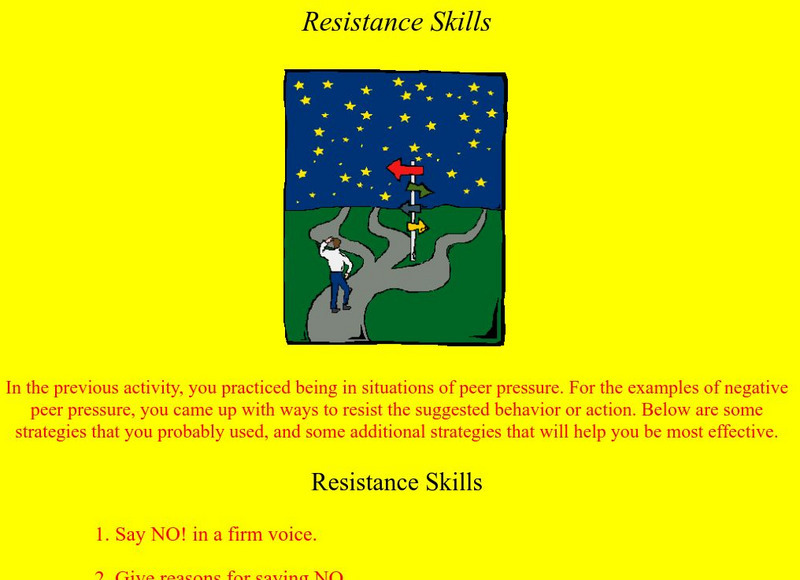 Here is a list of some strategies that can be used to resist peer pressure, and some strategies that will help you be most effective. Additional links for more information on responsible decision making are included.
