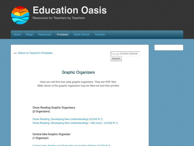 The table on this page organizes links to a variety of graphic organizers. Each organizer is pictured and explained. Question prompts, ideas for use, and investigative links also included on pages for individual organizers. If you are...