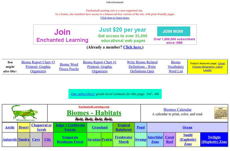 This excellent resource explores all of the biomes found on planet Earth! A side menu indicates the world's biomes and provides details on each. Colorful interactive maps, video clips, lesson plans, species profiles, and so much more...