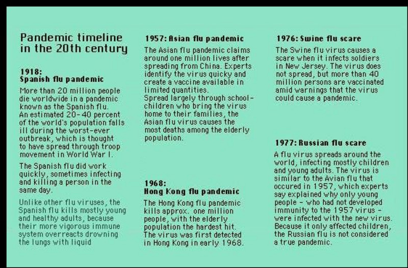 Brief overview and timeline of pandemics that occurred in the 20th century from 1918 through 1977.