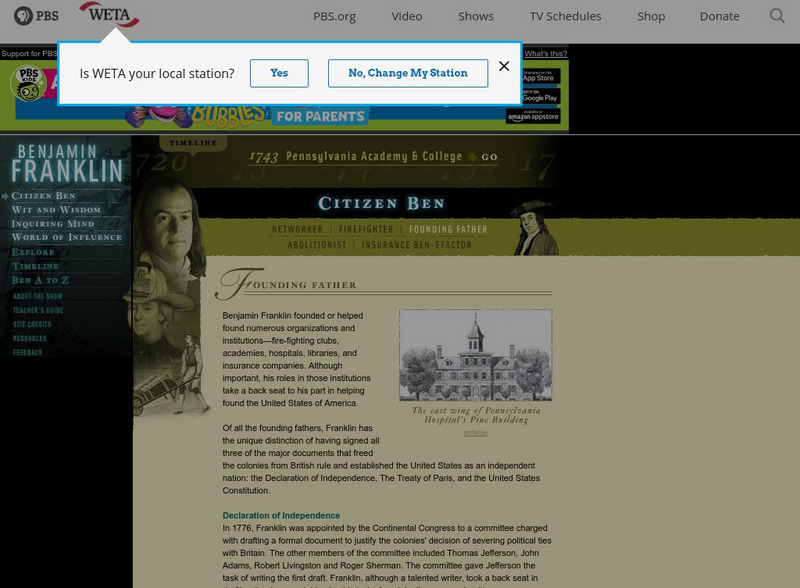 As part of a larger site about the extraordinary Benjamin Franklin, this section focuses on his being one of founding fathers of the new United States of America. Read about the three major documents he signed as a delegate and diplomat.
