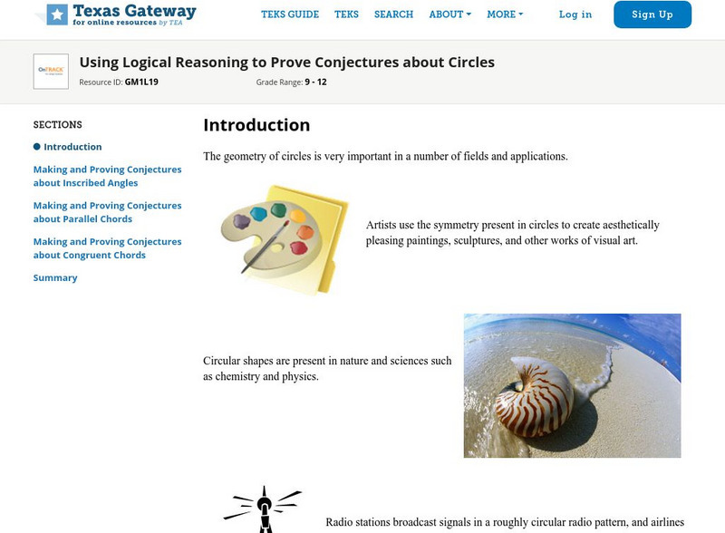 Texas Gateway: Using Logical Reasoning to Prove Conjectures About Circles