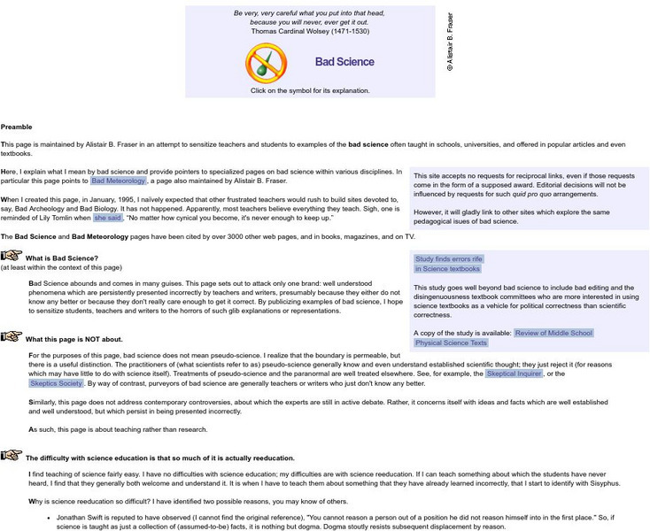 This site from the Pennsylvania State University is maintained to provide teachers and students with examples of the bad science often taught in schools, universities, and offered in popular articles and textbooks.