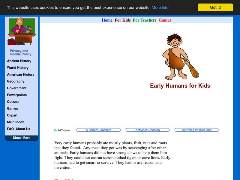 The little cave man guy with a club welcomes you to the site. Did early man look like him? Mr. Donn has put together a Cheat Sheet of Who's Who of Early Man beginning with the famous Lucy and ending with men that looked a lot like us!