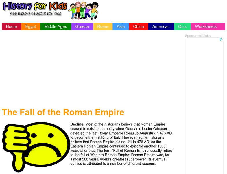 Article ending with a short quiz for kids gives an overview of the weakening and eventual fall of the Roman Empire.