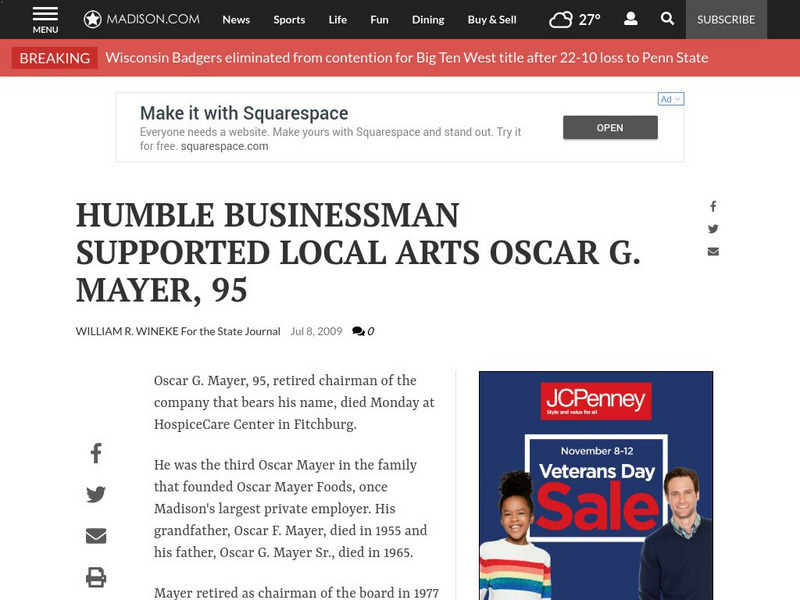 Wisconsin State Journal: Oscar G. Mayer, 95, Dies