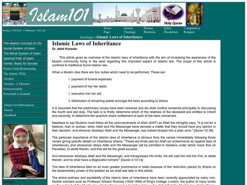 This site provides you with the nature of Islamic law and all of the major aspects of it. Excellent reference for basic Islamic terms.