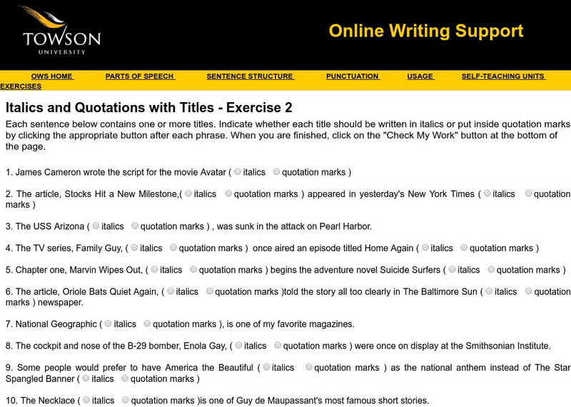 Towson University: Ows: Italics and Quotations With Titles Exercise 2
