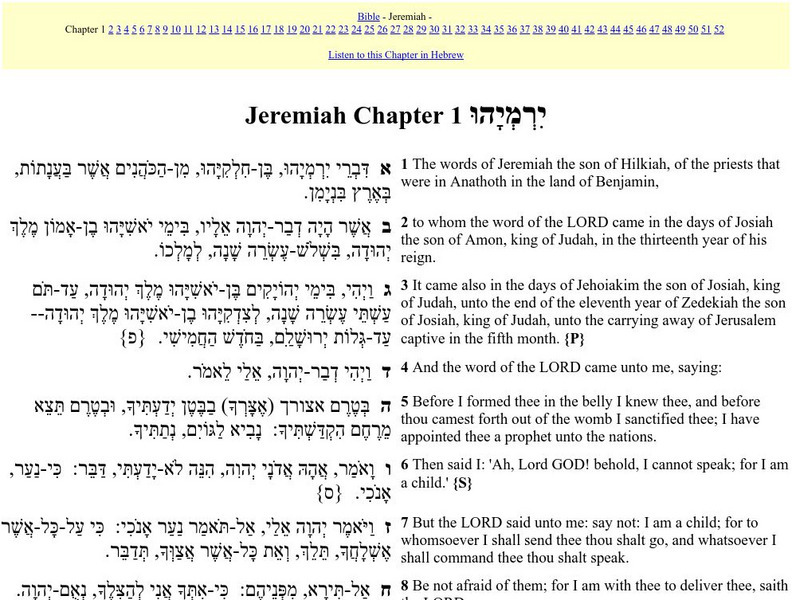 The text of the Book of Jeremiah, presented side-by-side in Hebrew and English.