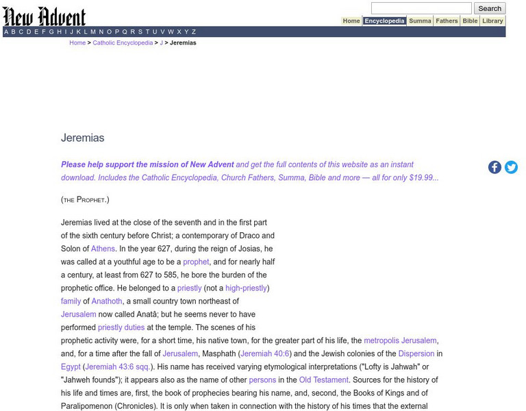 Catholic Encyclopedia: Jeremias (Jeremiah) the Prophet