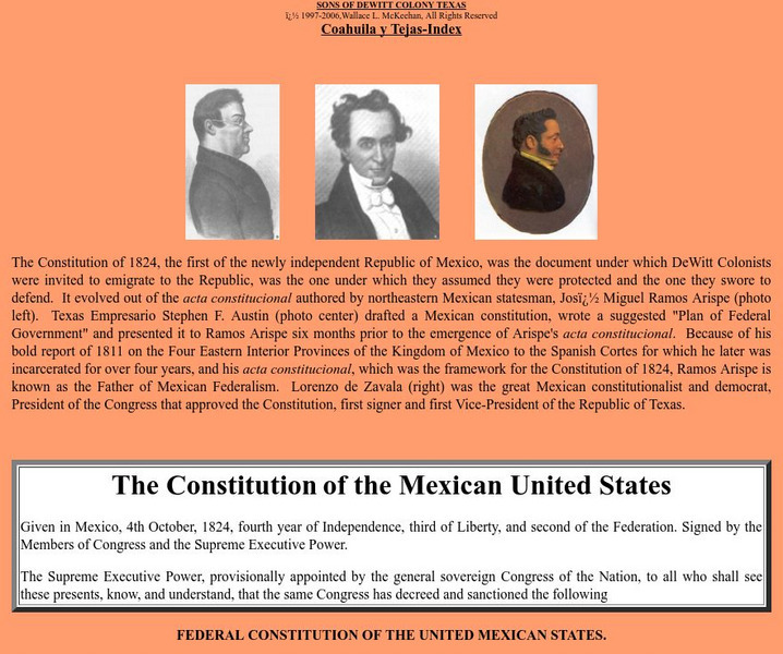 Sons of De Witt Colony Texas: The Constitution of the Mexican United States