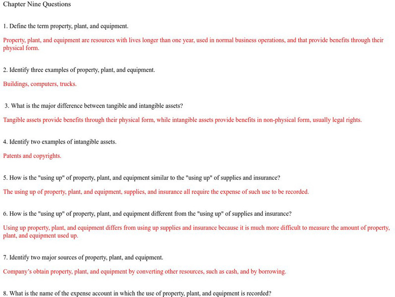 This site from the University of Massachusetts Lowell presents quiz questions and problems, complete with solutions, that illustrate all facets of plant assets, from their acquisition through their depreciation, including the journal...