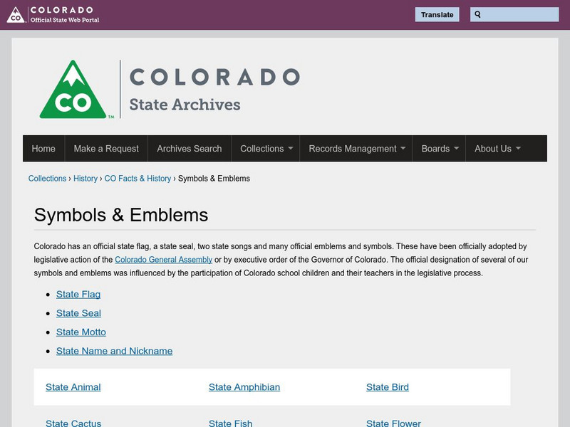 Colorado State Archives: Symbols & Emblems