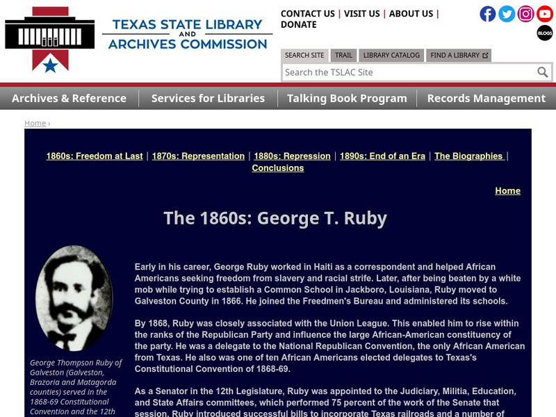 Texas State Library and Archives Commission: Forever Free: The 1860s: George T. Ruby
