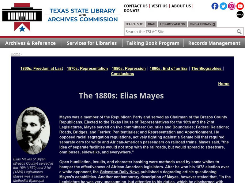 Texas State Library and Archives Commission: Forever Free: The 1880s: Elias Mayes