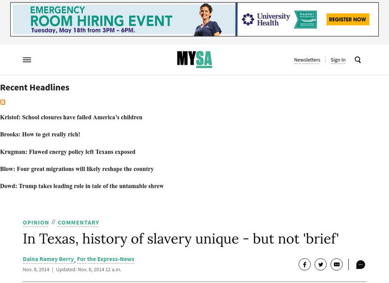 San Antonio Express News: History of Slavery Unique but Not 'Brief'