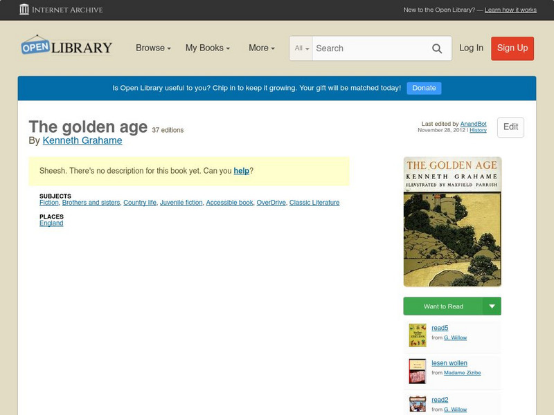 The full text of the novel The Golden Age by Kenneth Grahame. Register for a free account to unlock annotation tools, printing, and more.