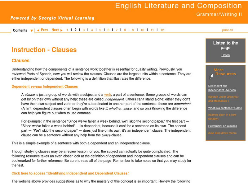 Ga Virtual Learning: Grammar/writing Ii: Instruction Clauses