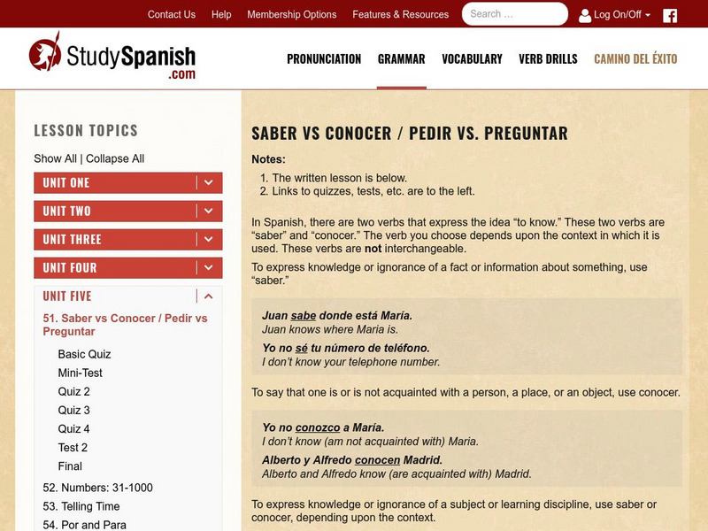 Great introduction to the use of "saber" and "conocer", "pedir" and "preguntar". The lesson is easy to understand, with ample examples. A short quiz, oral exercise and test at the end of the lesson checks the student's mastery of this...