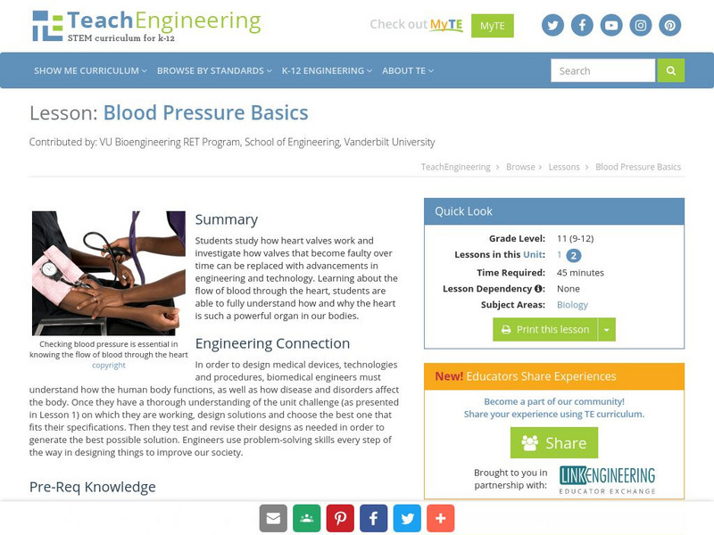 Teach Engineering: Blood Pressure Basics