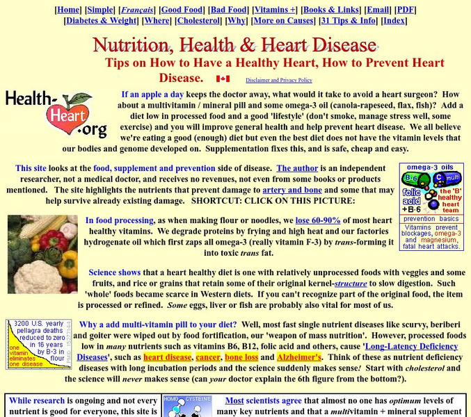 This website provides information about nutrition, health, and heart disease. It also discusses specific types of vitamin and mineral supplements you can take to improve or maintain your health.
