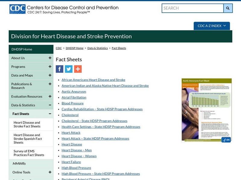 This article is provided by the American Heart Association and it covers a range of topics included under statistics. Heart disease and stroke statistics are provided, along with fact sheets and international cardiovascular disease...