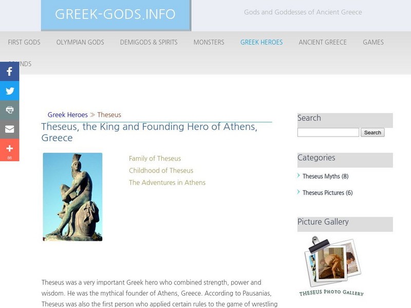 Learn more about Theseus, the most important king of Athens and second in strength to Heracles. Read the myths, view the picture gallery, and learn about his birth and childhood.