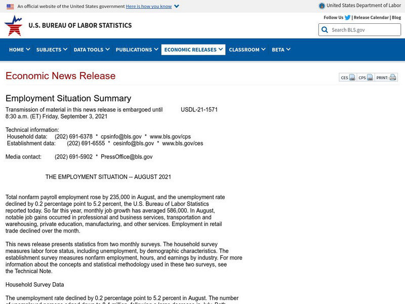 Bureau of Labor Statistics: Economic News Releases: Employment Situation