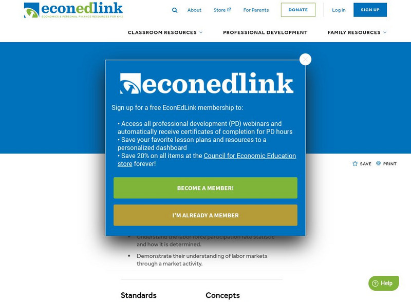 Students will learn about important labor market statistics that are frequently discussed in the media. An understanding of the unemployment rate and labor force participation rate will be developed through participation in an...
