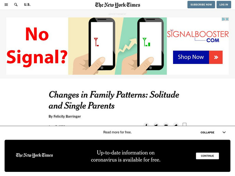 New York Times: Changes in Family Patterns: Solitude and Single Parents