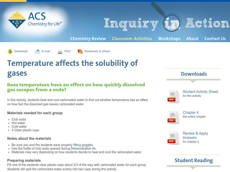 Inquiry in Action: Temperature Affects the Solubility of Gases