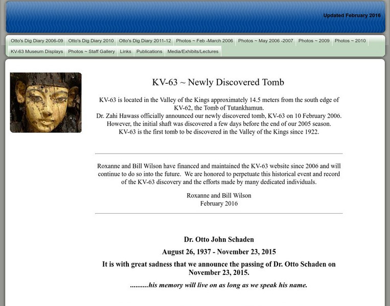 Exciting finds are still being made in the Valley of the Kings. This site is continually updated with news and pictures of KV-63