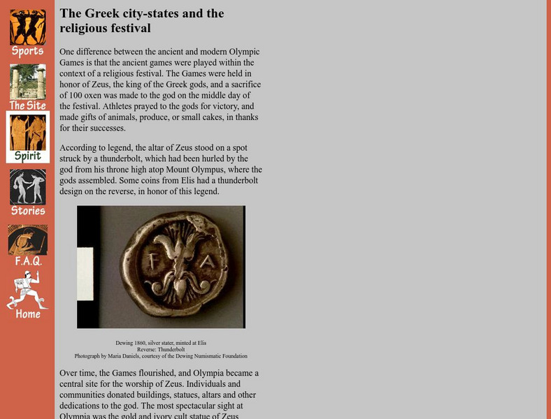 Discusses the difference between modern and ancient Greek Olympic games, and goes into depth about the religious festivals that took place. Additional links to related material.