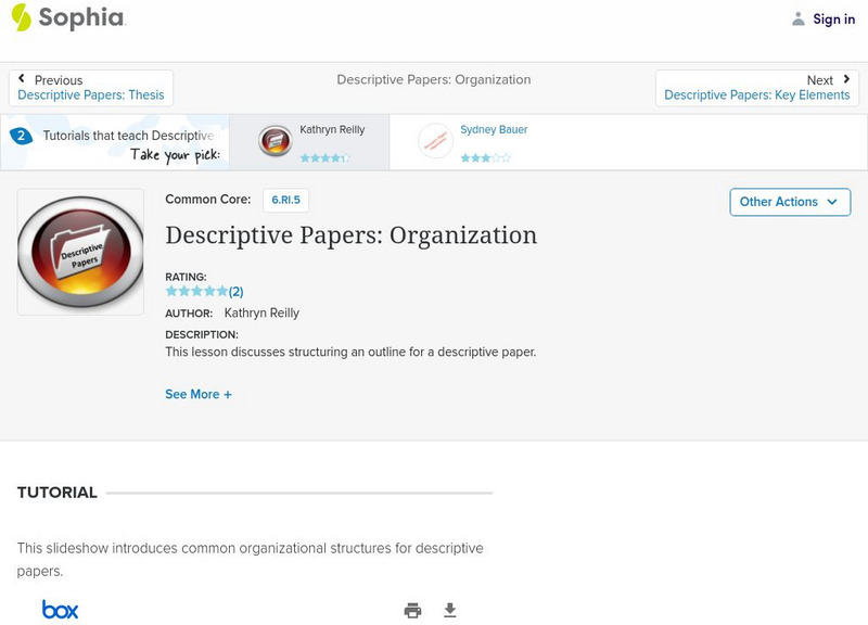 This slideshow lesson discusses the organization of descriptive papers. It reviews descriptive papers, lists the three most common organizational patterns: least to greatest, greatest to least, and chronological. Determining which order...