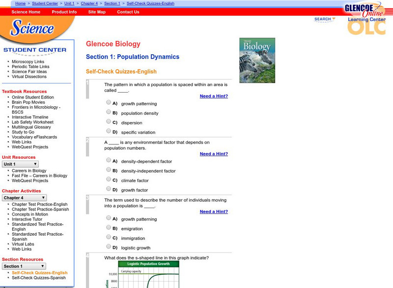 Glencoe Biology: Population Dynamics: Self Check Quiz