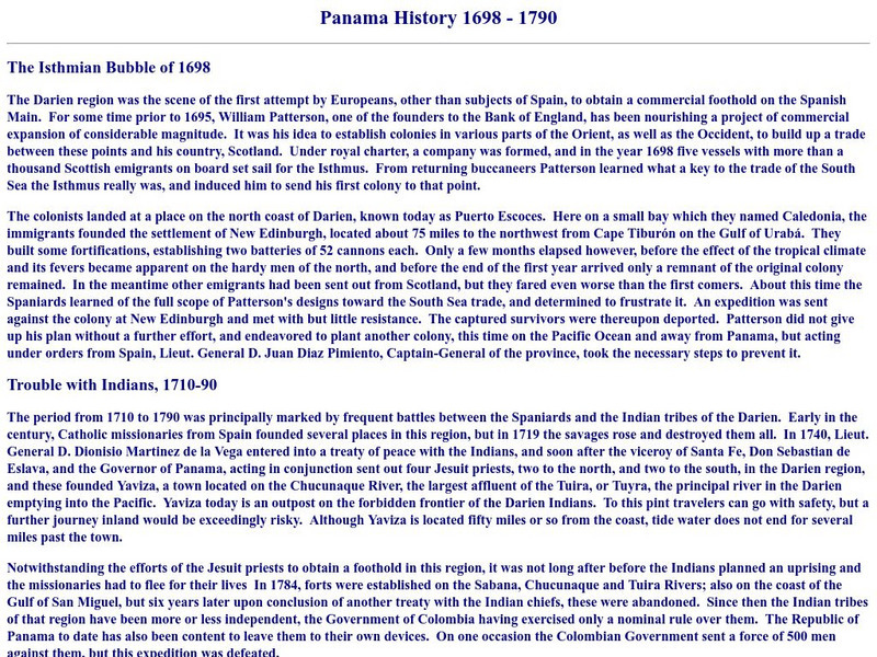 This page is an article taken from the "The Canal Zone Pilot". It contains information about the Pre-Colombian Period, as well as the Colonial Period.