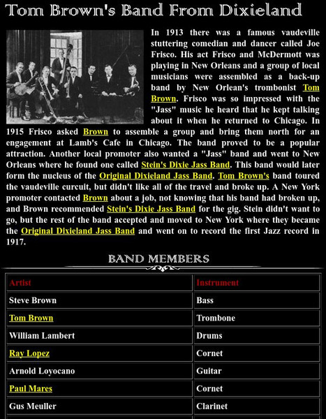 Red Hot jazz.com: Tom Brown's "Jass" Band