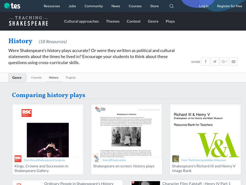 [Free Registration/Login Required] This collection of resources will help you determine if Shakespeare's historical plays were accurate or more political and cultural statements about the times he lived in. They include videos, articles,...