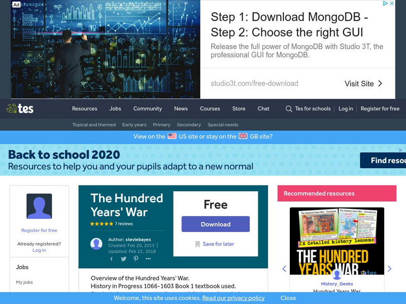 [Free Registration/Login Required] This resource focuses on The Hundred Years' War between England and France; it includes lesson plans and activities about the war and the importance of the Henry V's victory in The Battle of Agincourt...