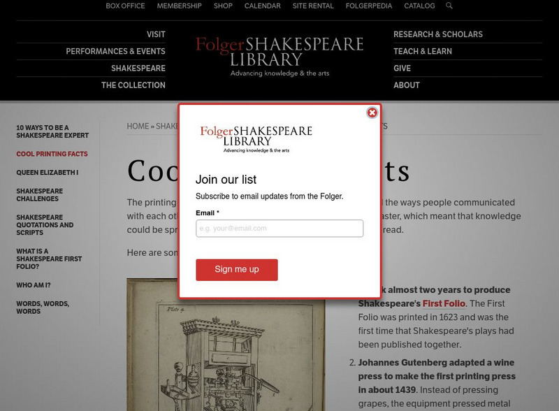 This informational articles provides interesting facts about Johannes Gutenberg's invention, printing press. The author explains how the printing press was important to the writings of William Shakespeare.