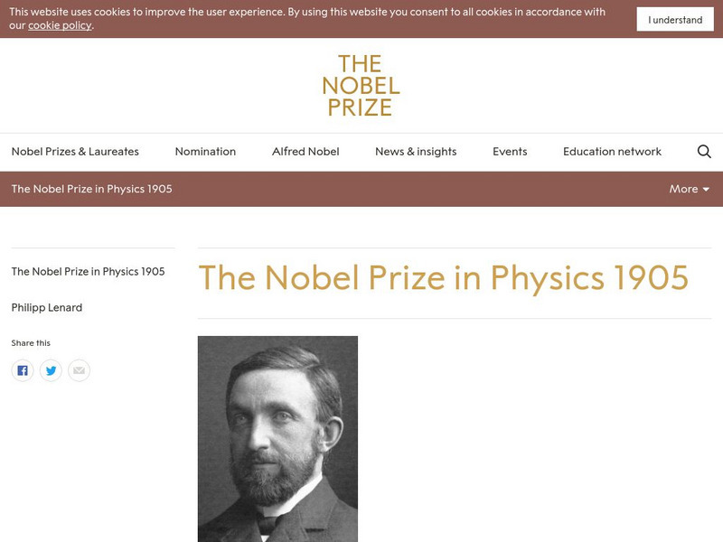 This Nobel E-Museum website commemorates the work of Philipp von Lenard and his Nobel prize achievement. This detailed resource includes a biography, Lenard's Nobel Lecture, and the "The Nobel Prize in Physics 1905 Presentation Speech."